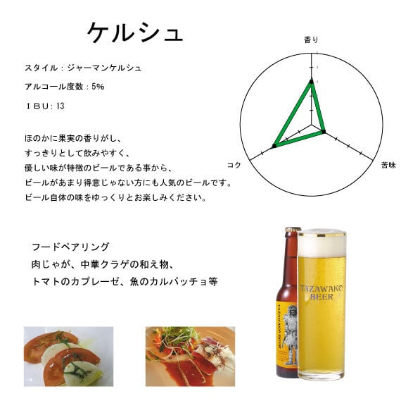 ・ケルシュ/原材料:麦芽(ドイツ製造)・ホップ/スタイル:ケルシュ/アルコール度数:5%/IBU:13